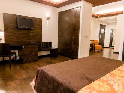 Junto al salón de celebraciones disponemos de un hotel 4 estrellas de nueva construcción, con una moderna decoración, y todos los servicios y comodidades para que vuestra estancia tras la celebración sea inolvidable.